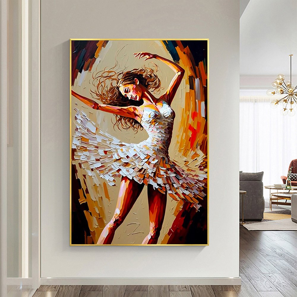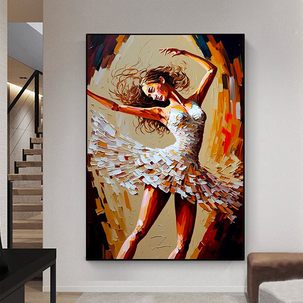 Home > Hand Painted Oil Painting Abstract Dancer Oil Painting On Canvas Large Wall Art Original White Ballet Painting Boho Wall Decor Custom Painting Living