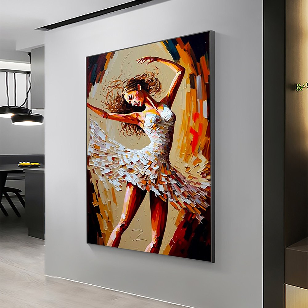 Home > Hand Painted Oil Painting Abstract Dancer Oil Painting On Canvas Large Wall Art Original White Ballet Painting Boho Wall Decor Custom Painting Living