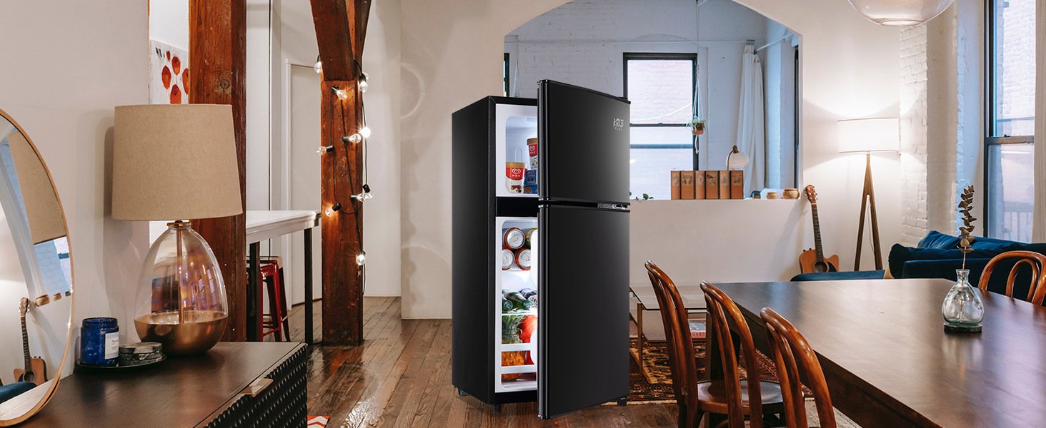 1, Top Freezer Design: The large capacity of 3.5 Cu.Ft is divided into refrigerator and freezer areas, which are more spacious than ordinary mini refrigerators and can keep food fresh or frozen. The stylish two-door design is very suitable for dormitories, offices, bedrooms and apartments.